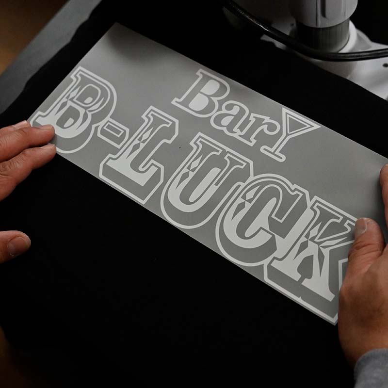 細い線や細かいデザインは苦手ですが、背番号やネーム入れなど単色で1点ごとにプリントが必要な場合などに向く方法です。
